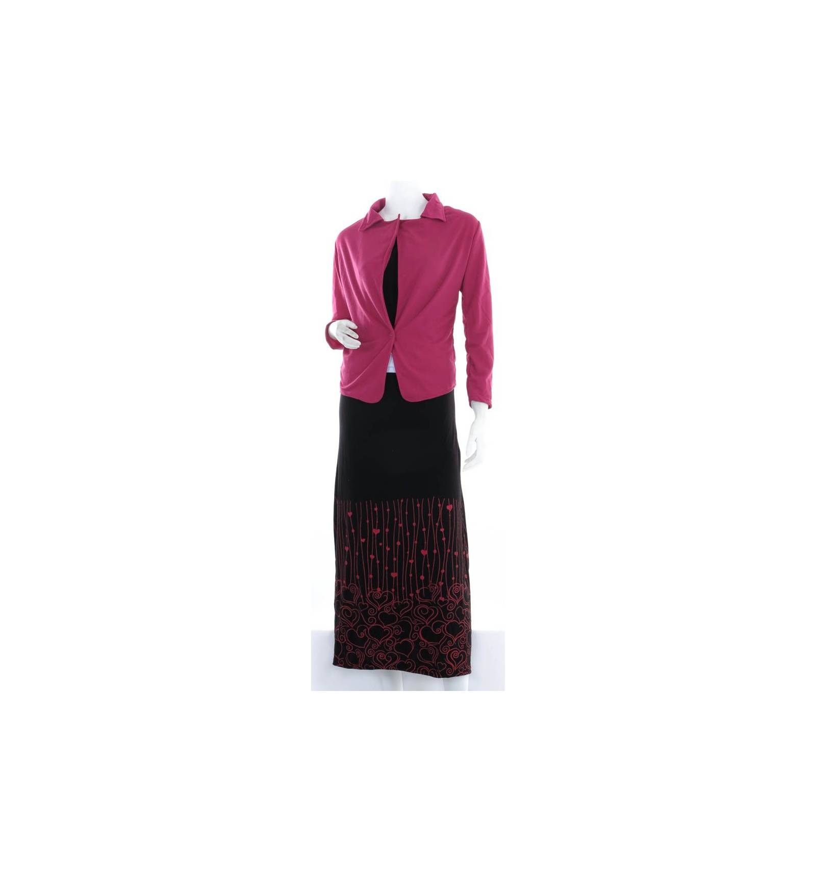 One set terdiri dari dres tanpa lengan dan balero.Bagian leher menggunakan model O-neck.Bahannya adem,dapat menyerap keringat,warna tidak luntur,dan tebal.Hiasan berasal dari motif